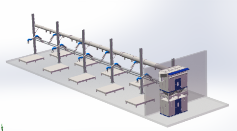 在涂裝生產(chǎn)線現(xiàn)場分散布置有5套廢溶劑收集裝置,1套分布于中涂線(包括8臺(tái)機(jī)器人和10個(gè)手工噴漆點(diǎn)),2套分布于面漆色漆線(包括8臺(tái)機(jī)器人和16個(gè)手工噴漆點(diǎn))